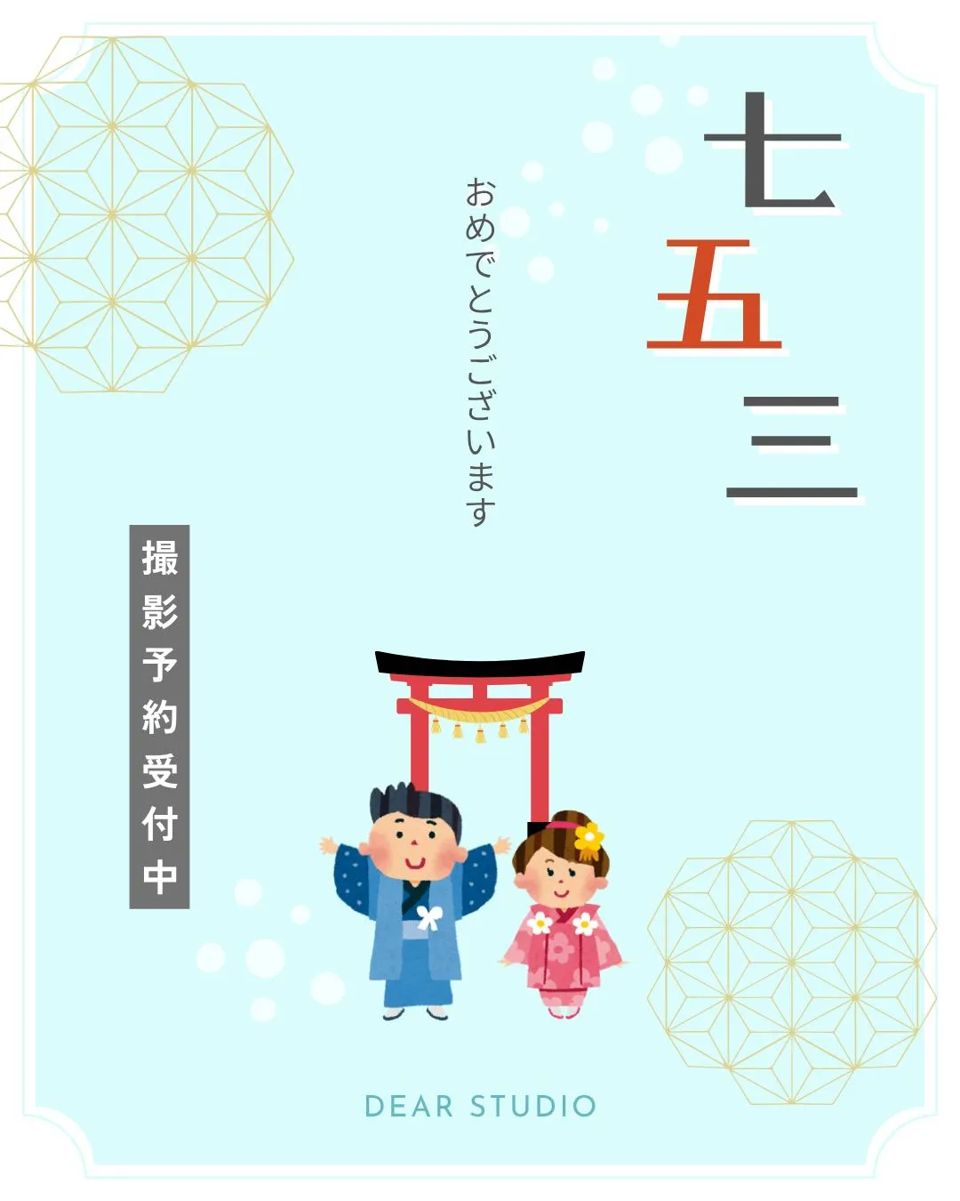 七五三おめでとうございます☆彡お子様の健やかな成長を、心よりお祈り申し上げます。これからも、笑顔あふれる毎日でありますように…ご家族の思い出作りのお手伝いをDEARSTUDIOにさせていただきたいと思…