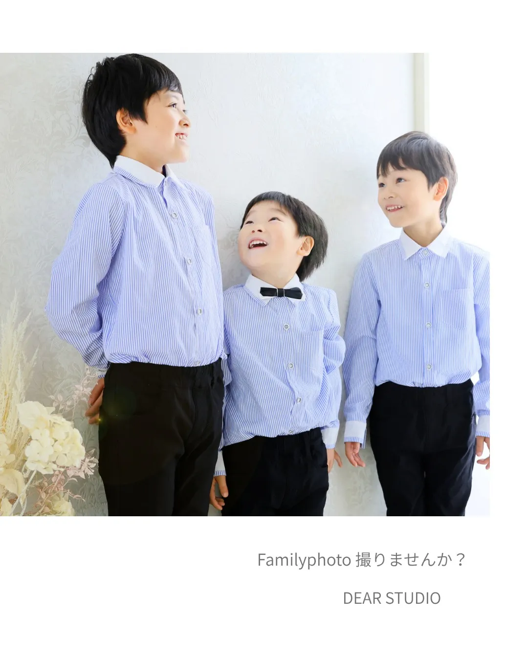 笑っている顔も 笑っている顔も泣いてる顔も寝ている顔もすべてが愛おしい…初めての家族写真はDEARSTUDIOで…家族・親子・兄弟今の家族の形を残してください。大きくなってから見返す時きっと、撮って良かったなと思える…