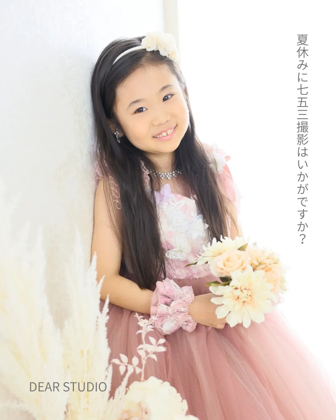 女の子の憧れ✨️✨️ドレスを着て、ヘアメイクを終わらせた姿を見て一番ドキドキしちゃうのは、パパですね…今年七五三撮影をお考えの方撮影、お出かけお支度をお考えの方お早めにご予約ください。前日までの…