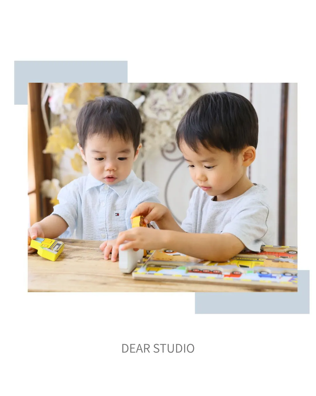 ちょっぴり緊張気味の弟くん! ちょっぴり緊張気味の弟くん!ここでお兄ちゃんの出番!!お家の雰囲気で優しく一緒に遊んでくれました。いつの間にか、にっこにこです(*^^*)当店は【完全貸切】のスタジオです。ご家族だけで、ゆったりと…