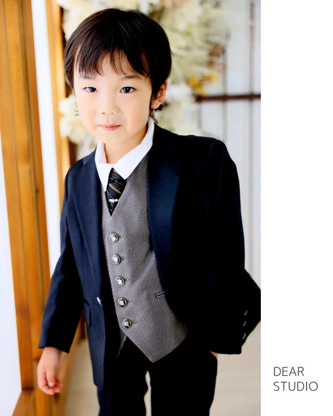 普段走り回っている男の子も 普段走り回っている男の子もネクタイつけると、ちょっぴり緊張普段とちょっぴり違う表情が見れるのもスタジオ撮影のいいところです七五三撮影は、お早めにご予約ください。前日の予約時刻まではWeb予約に…