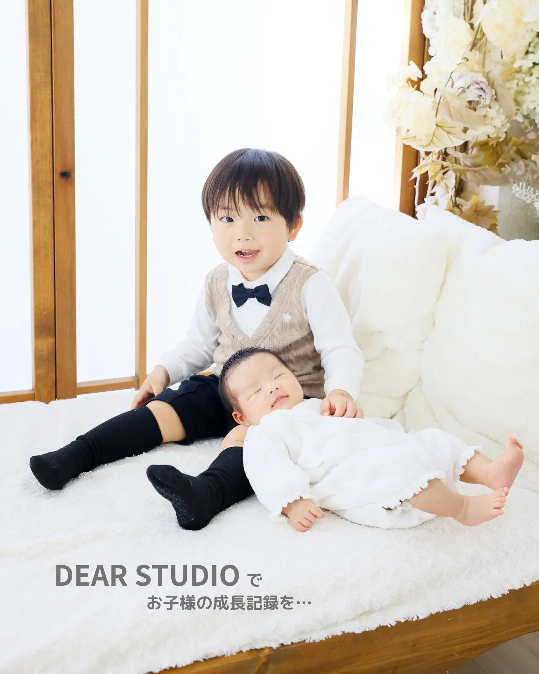 初めての家族写真はDEARSTUDIOで…お子様の成長は、あっという間です。兄弟での姿も、変化していきます。家族・親子・兄弟今の家族の形を残してください。大きくなってから見返す時きっと、撮って良かった…