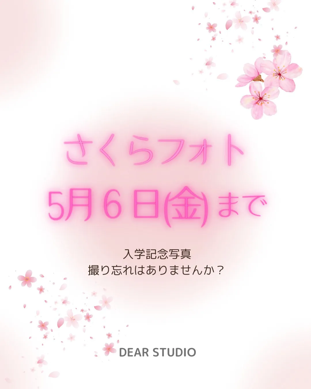 桜フォトは5月6日(火)まで 桜フォトは5月6日(火)まで入学記念撮影がまだの方入学式の時に、思うような写真が撮れなかった方さくらフォト撮影ができる今がチャンスです。4月平日、GWはまだ空きがございます。LINE公式アカウントhttp…